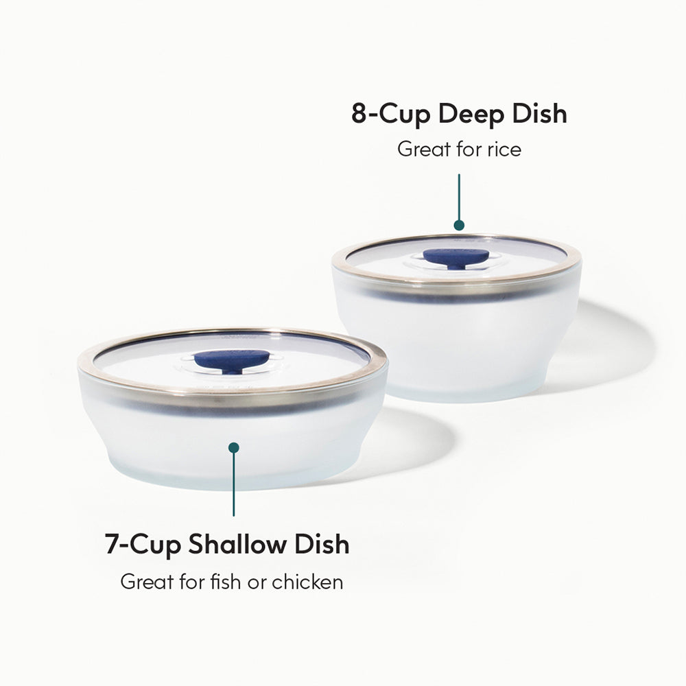 Build your plastic-free kitchen with Anyday's frosted glass collection. These durable frosted glass food storage containers with vented glass lids also double as versatile microwave cookware. Ideal for reheating leftovers and frozen food, steaming food in the microwave from scratch, and at-a-glance food storage, these dishes are also microwave-, oven-, freezer-, and dishwasher-safe.